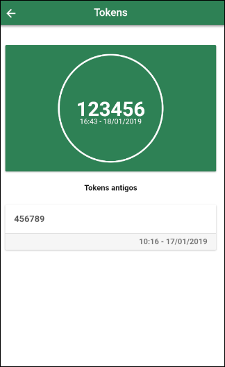 Demonstração da visualização de token recebido pelo beneficiário no aplicativo do IMAS: